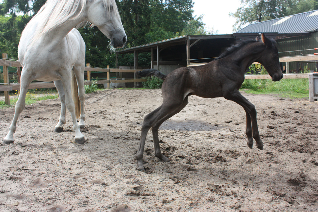 Aguilita heeft op zaterdag 5 juli 2014 een prachtig zwart merrieveulen gekregen om 04:40 uur 's ochtends, na 334 dagen dracht.