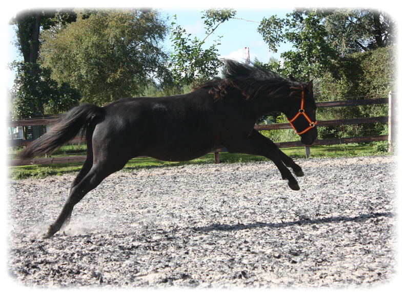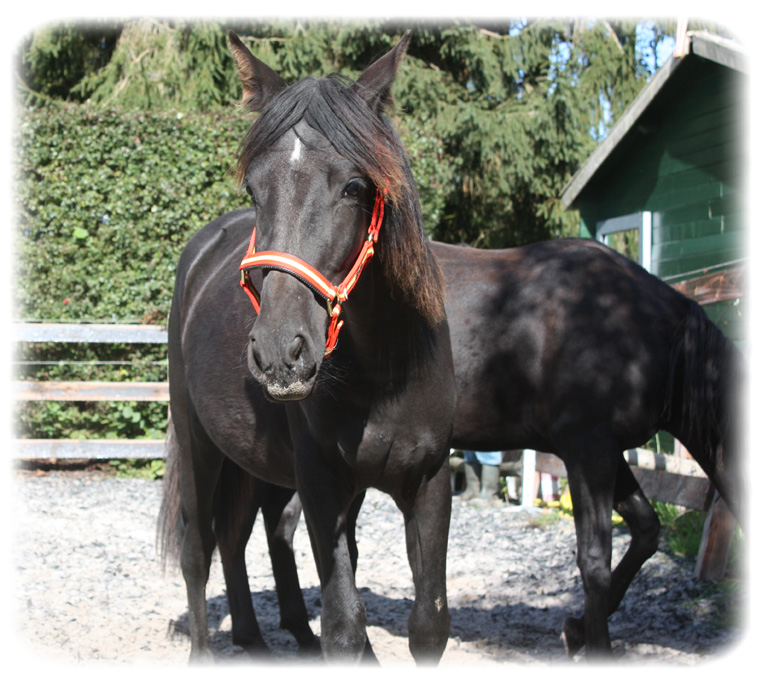 Juana is een nieuwsgierige ondernemende jonge merrie. Haar uiteindelijke stokmaat zal ergens rond de 1.60m liggen. Ze groeit op in onze gemengde groep met PRE merries (jong tot oud). Kent uiteraard de basisdingen zoals aan het halster mee lopen, bekapt worden, dierenarts voor vaccinaties etc. Verder gezien haar jonge leeftijd natuurlijk nog helemaal 'groen' qua africhting.